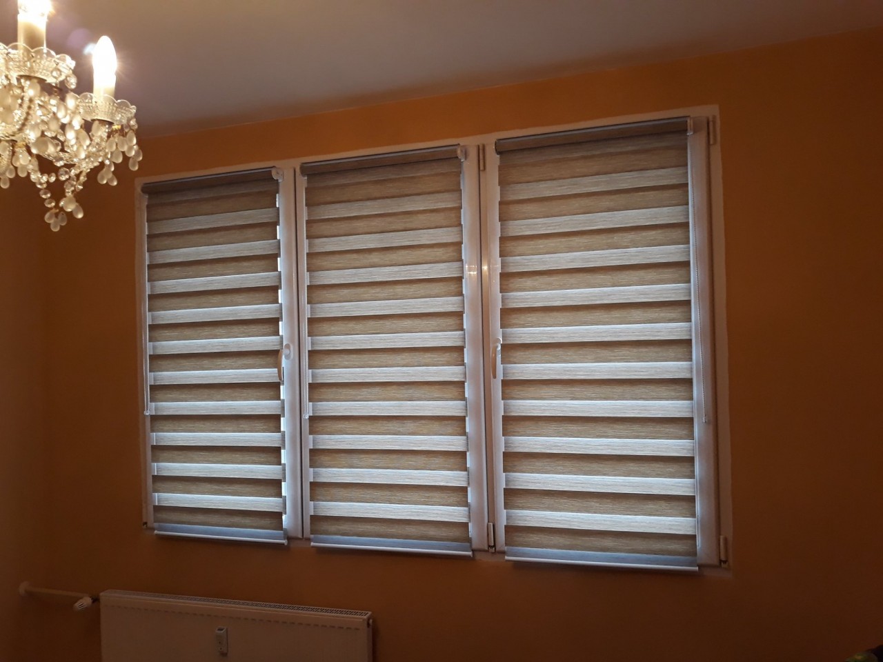 Klasická látková roletka Zebra (den/noc) nabízí barevnost nosičů a příslušenství (bílá, hnědá, stříbrná a barvy z vzorníku RAL za příplatek). Montovat lze tuto roletku na zeď i strop, ovládat ji lze manuálně (řetízkem), dálkově (bateriový dobíjecí pohon) a tahem za řetízek s bateriovým dobíjecím pohonem.